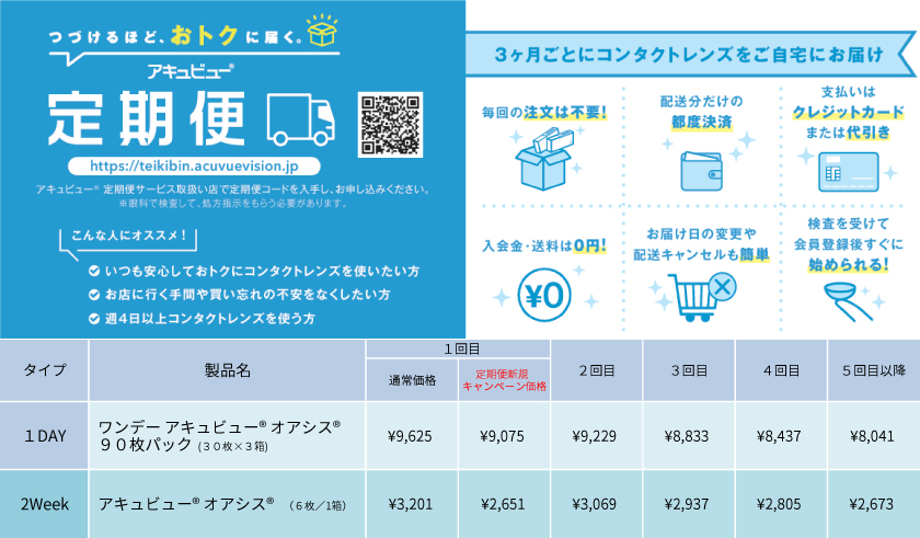 目の健康を維持しながら、コンタクトレンズを快適に便利にお使いいただける今までになかったサービスです。